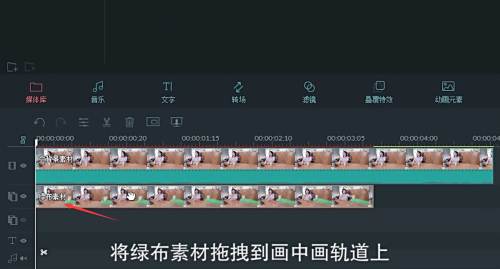 将绿布素材拖到画中轨道上。