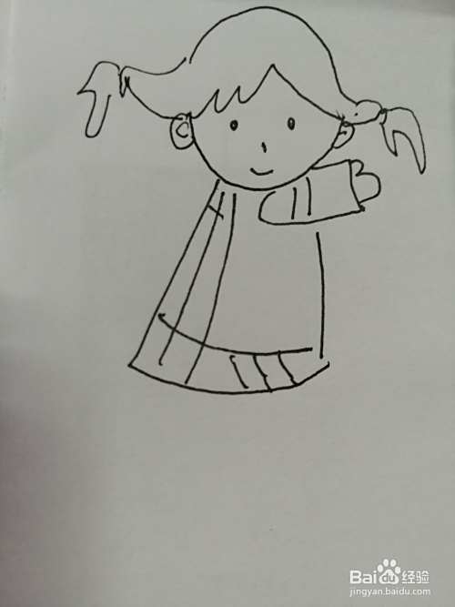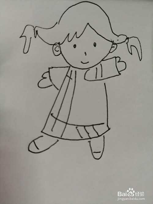 第七步,最后把漂亮的小女孩的两条腿画出来。漂亮的小女孩就画好了。