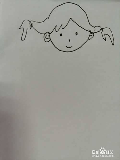 第二步,接着继续画出漂亮的小女孩的两个可爱的长辫子,注意辫子细节的画法。