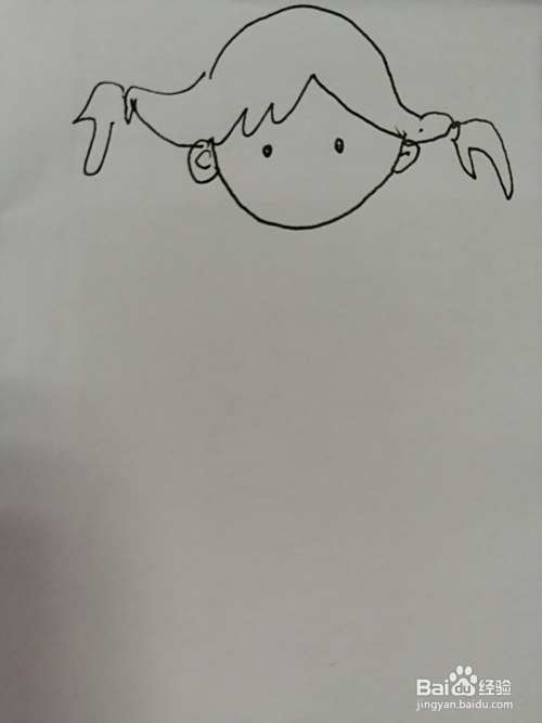 第三步,然后我们继续画出漂亮的小女孩的两只可爱的耳朵,注意小女孩耳朵轮廓的画法。