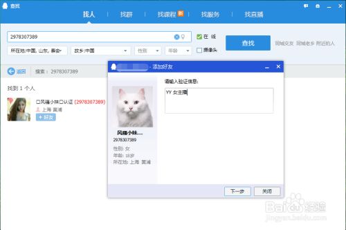 QQ查找好友并添加,申请内容:YY女主播