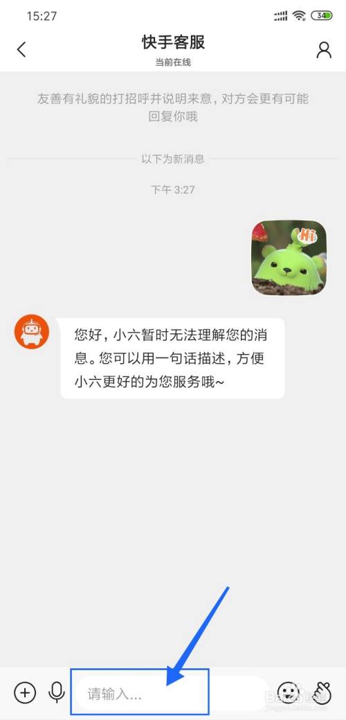 第七、进入到快手在线客服页面,输入问题进行咨询。