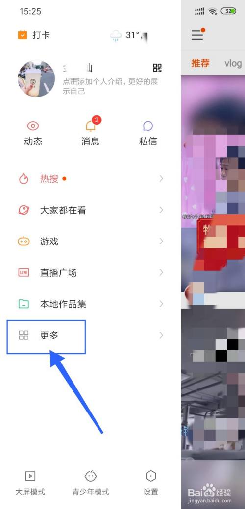 第二、快手客服在更多功能内,所以在功能页面点击“更多”按钮;