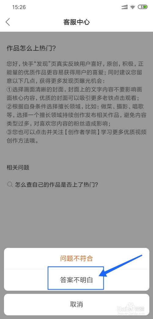 第六、然后下方出现三个选项,选择其中一个如“答案不明白”,咨询快手在线客服;