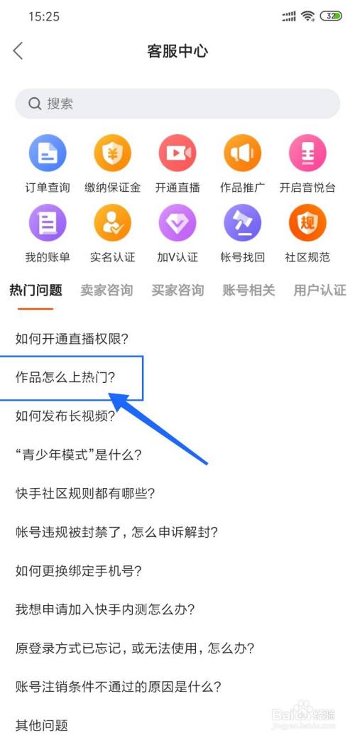 第四、进入到快手的客服中心,可以选择要咨询的问题;