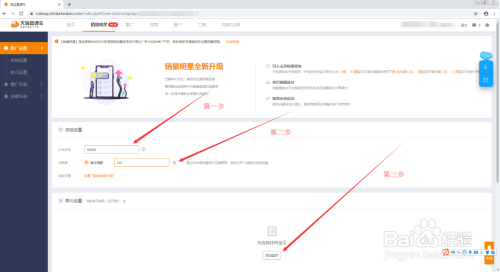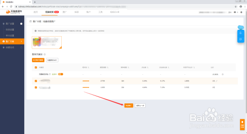 跳转入推广设置,设置名称,日限额,以及投放地域时间,设置完成之后点击添加宝贝,选择宝贝添加,点击确定,跳转页面点击下一步设置推广方案