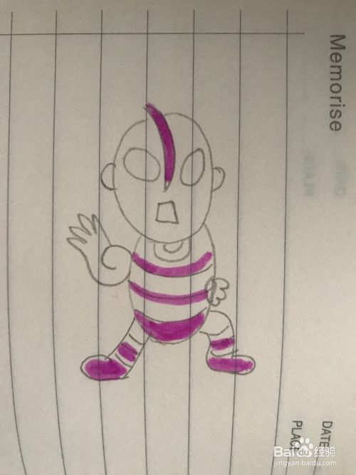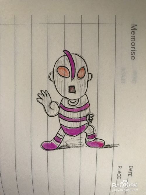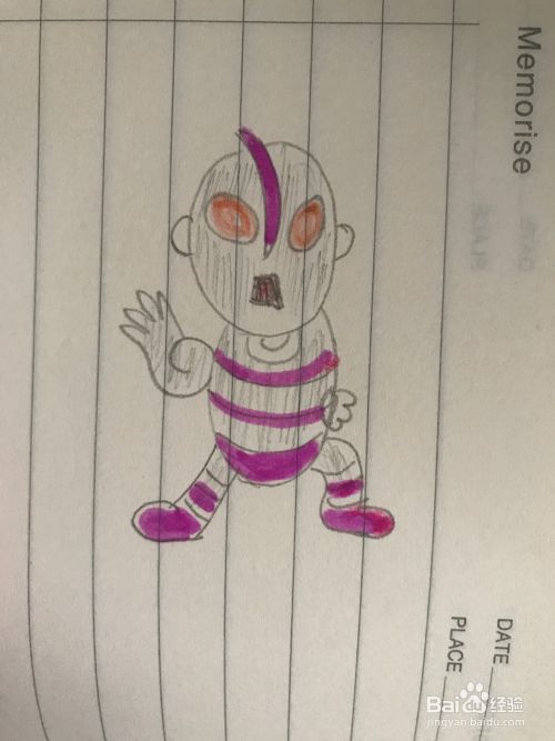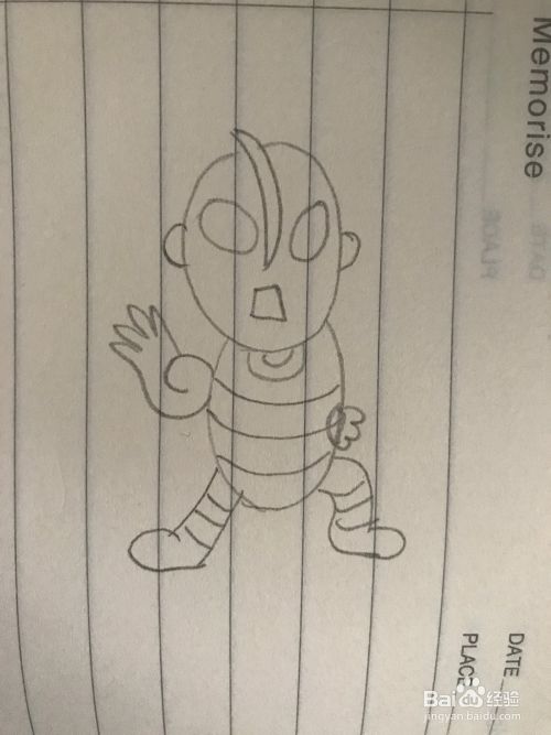 最后用黑色水笔勾勒出奥特曼的轮廓,覆盖了奥特曼铅笔的痕迹。