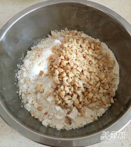 1将烤箱调到180度预热之后放入花生,烤大约7分钟即可。烤好的花生晾凉之后放入保鲜袋,用擀面杖擀碎。