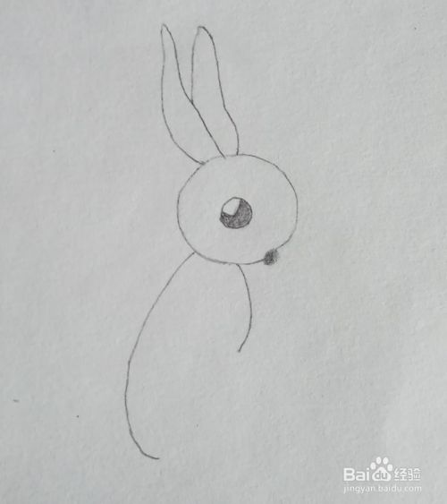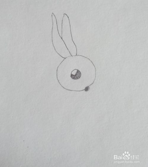 画小兔子两只竖起来的耳朵,还有大眼睛,眼珠是往下面看的,如图所示。