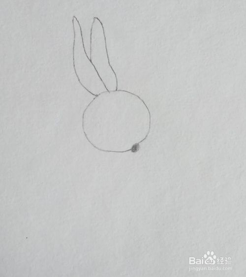 在纸上画一小圆,是小兔子的小脸,然后再添上一黑点,是鼻子来着,如图所示。