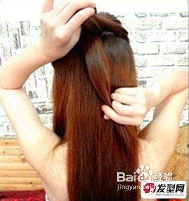 步骤1:首先将长发在脑后梳顺,再分成上下两部分,将上部分的头发用橡皮筋扎成一个马尾。