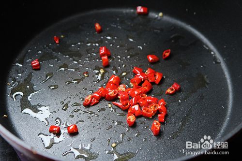 锅内放入少许油烧热,小米椒切段后放锅里炒出辣味;