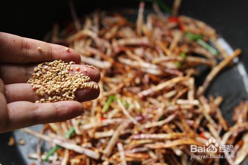最后出锅撒上熟芝麻翻炒均匀即可;