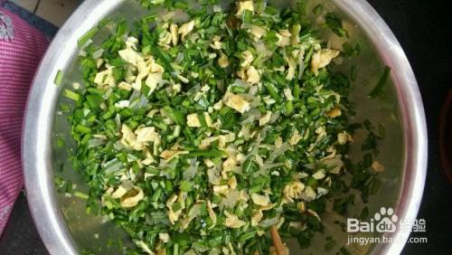 粉条提前用热水泡软,切碎和鸡蛋韭菜碎混合,放入十三香,鸡精,盐,香油拌均