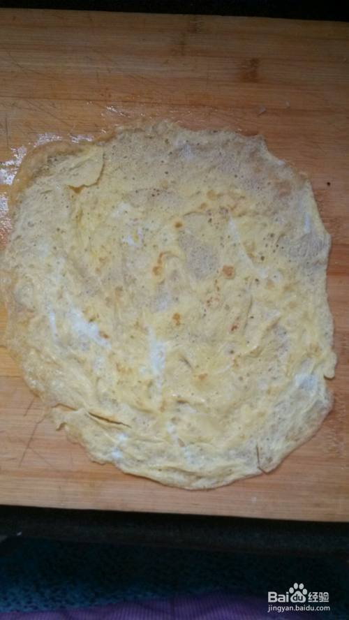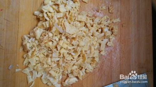 鸡蛋打散,煎成薄薄的鸡蛋饼,晾凉切碎