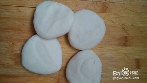 用手把剂子按扁,擀成中间厚边缘薄的面片,不要太薄了哦,我擀好的面片网络拍照了