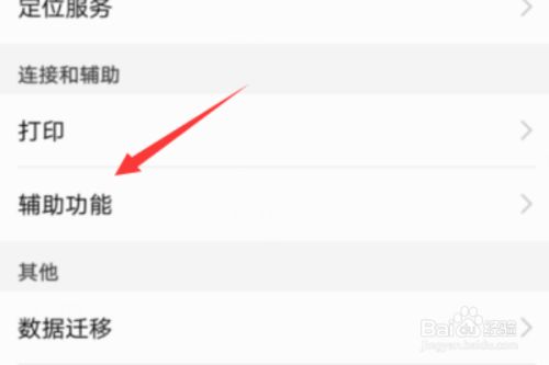 进入高级设置之后,找到辅助功能一栏,点击打开。