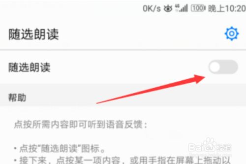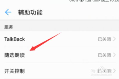 进入辅助功能子菜单后,点击随选朗读一栏进入。