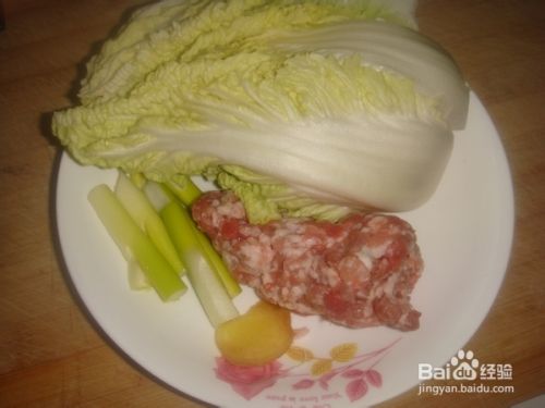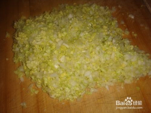 把杀好的白菜攥出水,加到肉馅中拌匀。