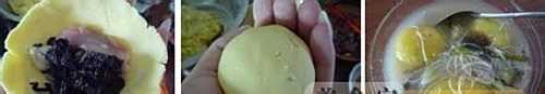 6.取一小团番薯团,用手慢慢摊成椭圆碗状(我也不在行(*^__^*) 嘻嘻……);