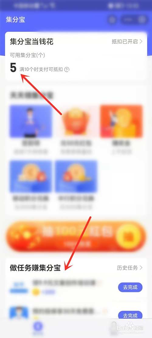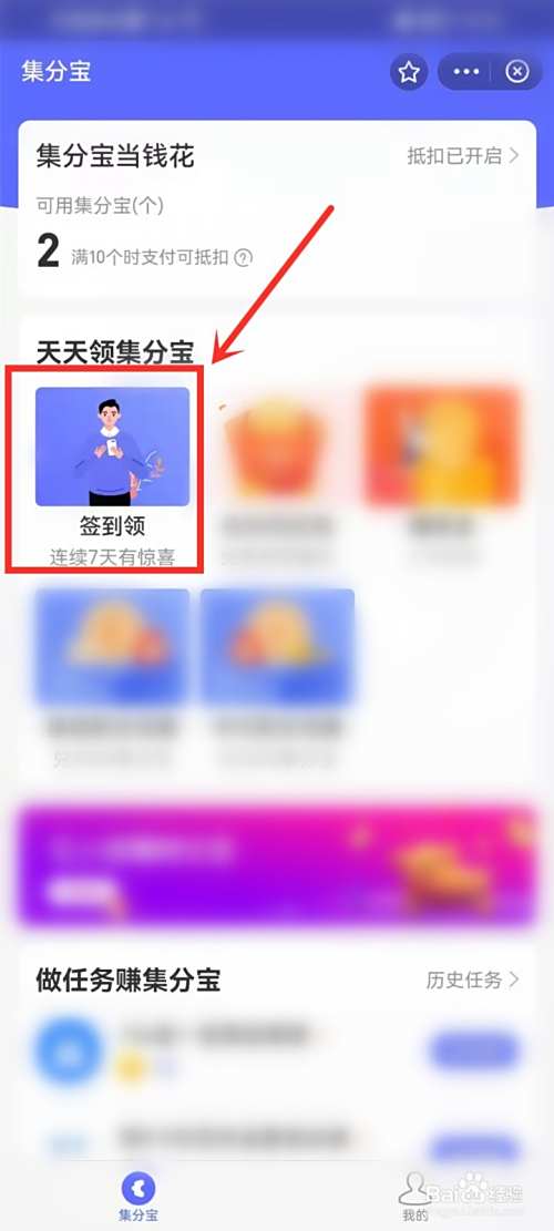 返回首页,完成【做任务赚集分宝】下面的任务,即可领取集分宝。