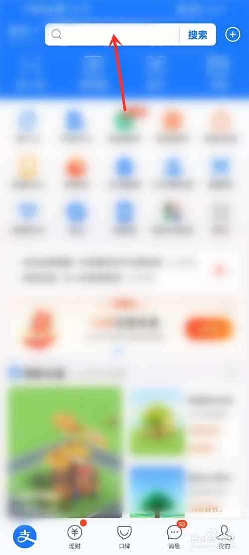 打开支付宝首页,点击顶部搜索框。