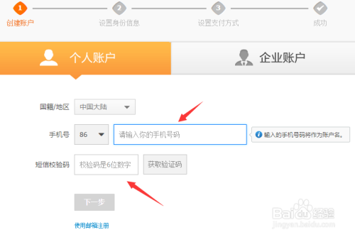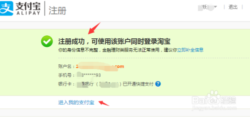 最后我们输入自己的银行卡号,输入手机号的验证码就可以了。现在我们已经注册成功了,可以登录支付宝帐号了。
