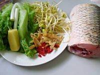 第五步:调大火,将腌渍好的鱼一片片的夹入锅里,变色就捞出来盛于豆芽之上,汤汁过滤杂质倒入碗里。