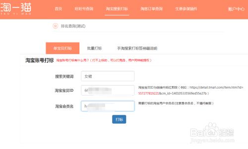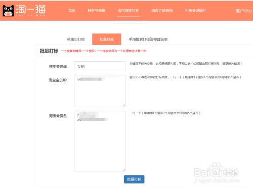 点击淘宝搜索打标,输入搜索关键词,商品的ID,淘宝号就可以打上标签。