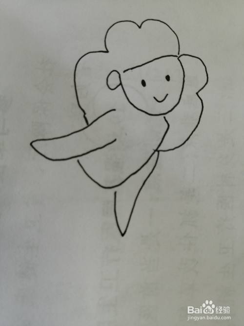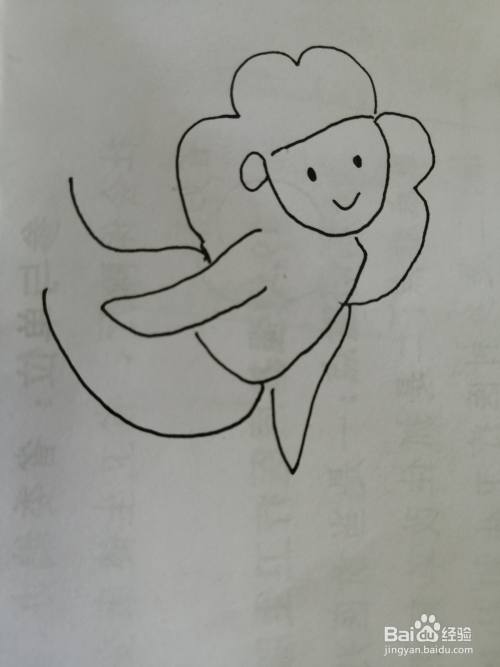 第四步,然后继续把简笔画美人鱼的一只小手臂画出来。