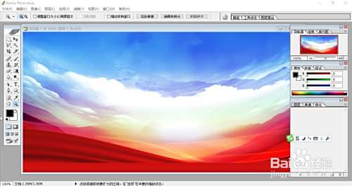 新建设一个图片文件,我们导入天空与绸缎的画面,让两个元素上下结合,呈现冷暖色的效果。