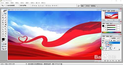 导入一个绸缎的飘带,在绸缎的左侧画出一个红色的心形图案,从而呈现心中的意境。