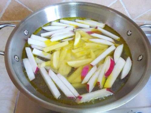 3冷水,下萝卜和土豆条。