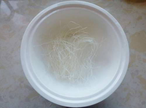5取一汤碗,内放一把粉丝。粉丝不用煮也不用泡,热汤就可以将之焖熟,口感非常好。我做有粉丝的汤都用这种方法,屡试不爽。