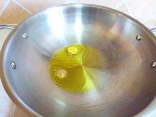 用姜炝锅,然后加适量水。