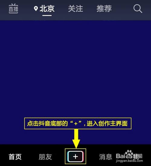 进行创作。点击抖音底部的“+”,进入创作主界面。