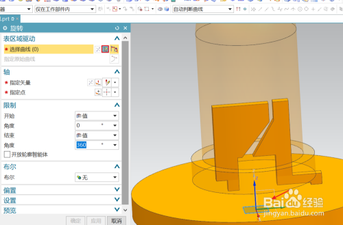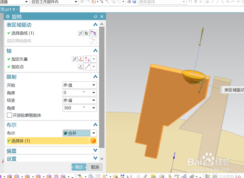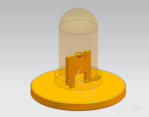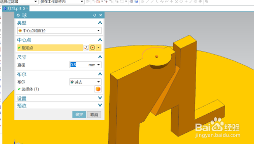 5选用旋转命令,在YZ面上绘出其旋转线;草图如图所示。旋转出的实体与相应实体合并。在合并得到的实体上,以圆心为定点,创建一直径为0.8的圆球,与之进行布尔求差。得到完整的模型。       END END