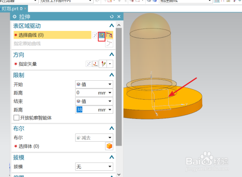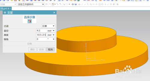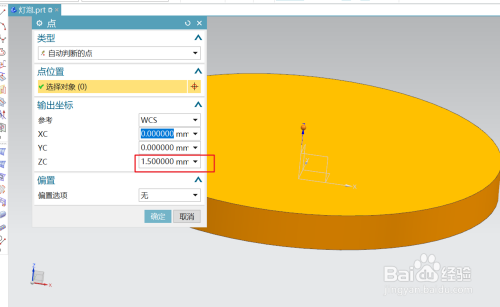 2在电路板上创建灯泡 先创建灯泡底部的台阶,也是圆柱体,参数如图所示。圆柱的定位Z轴1.5。