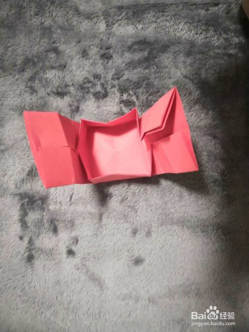 3.制作盒子 接下来,我们沿着折叠的两个等腰三角形将小长条从中间打开,然后将其沿边折叠,两边的操作相同,用手捏成一个纸盒的形状,注意要折痕要深一些,方便成形。