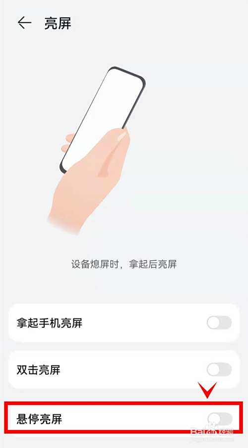 进入【亮屏】界面——开启【悬停亮屏】右侧的开关键即可。