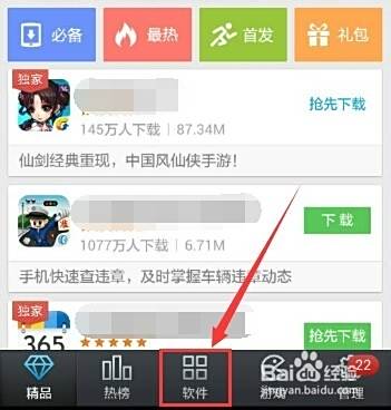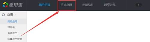 1.大家先打开电脑的应用宝,将手机中的usb调试打开之后通过数据线连接电脑。等到电脑出现了我们的手机应用之后,大家点击界面上方的手机应用界面。