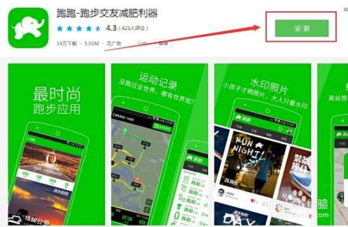 4.这里有关于跑跑的截图、评价、版本、功能等,我们点击右上角的安装按钮就可以直接安装到手机中了。