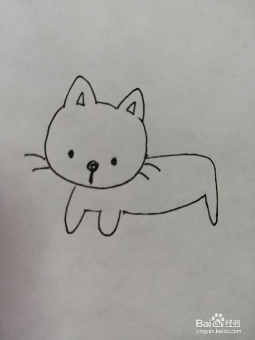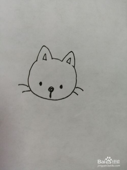 第四步,然后在可爱小猫咪的脸蛋两边画出四条胡须。