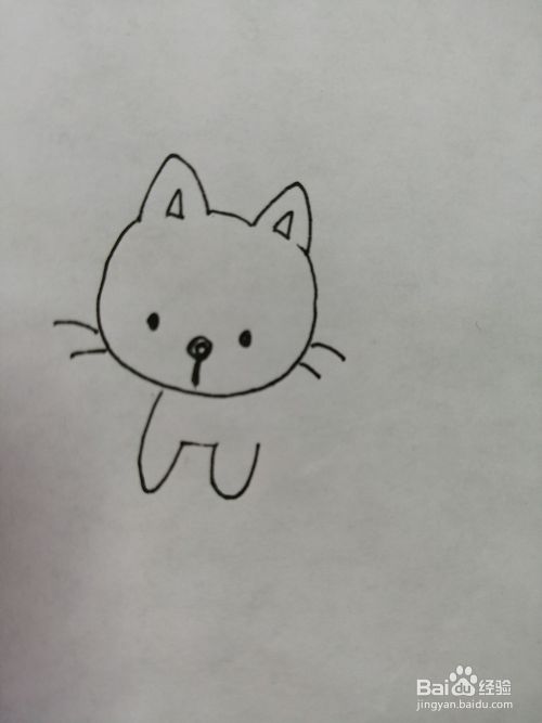 第五步,接着在可爱的小猫咪的头部下面画出两只小脚。