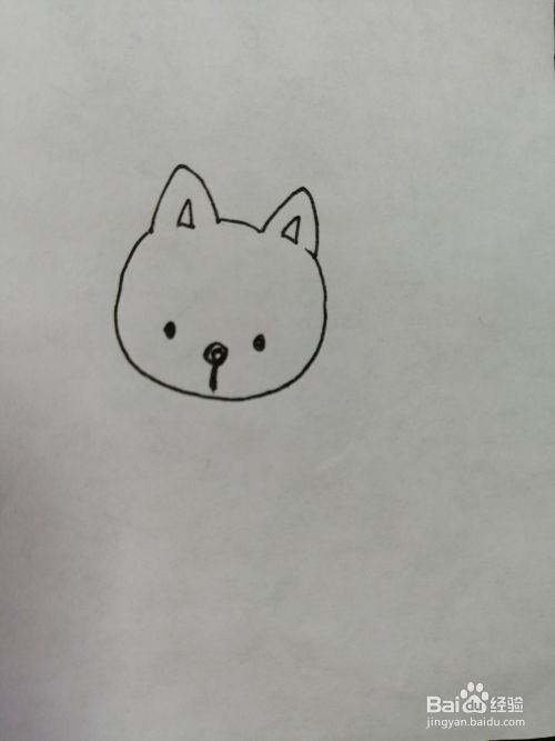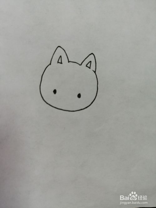 第三步,接着画出可爱的小猫咪的小黑眼睛和鼻子。