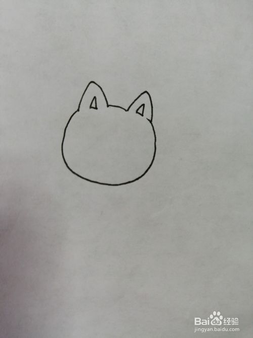 第二步,接着画出可爱的小猫咪的两只可爱的小小耳朵。