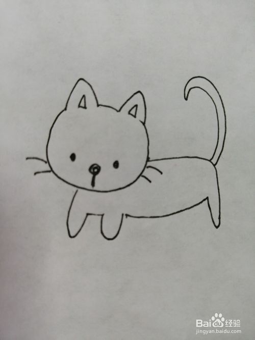 第七步,最后把可爱的小猫咪的弯弯的尾巴画完整。可爱的简笔画小猫咪就画好了。