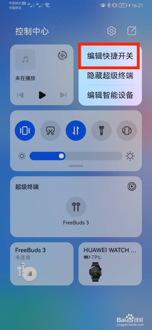 在华为手机上,通过控制中心的编辑快捷开关操作,进行下拉开关设置的方法。