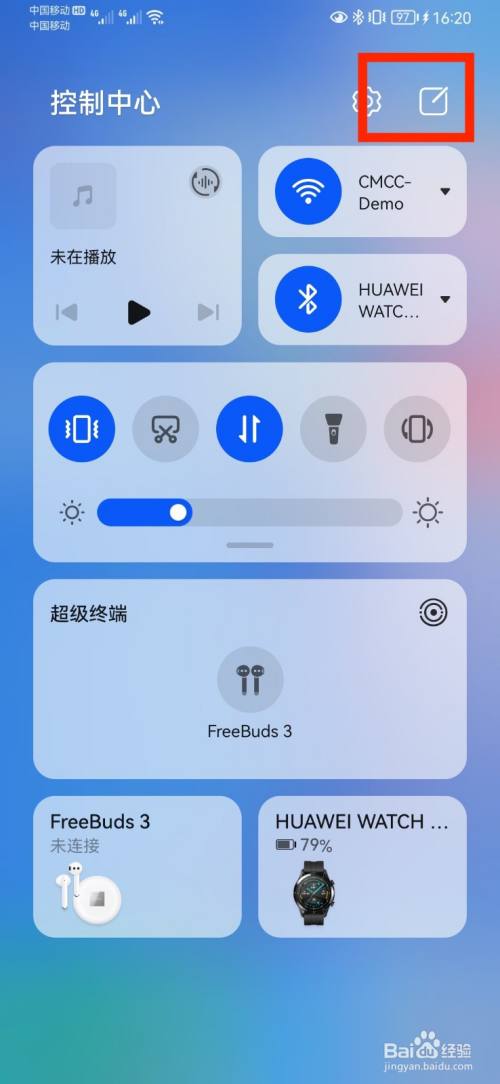 在华为手机桌面上,下拉屏幕,进入控制中心,选择右上角【编辑】菜单。