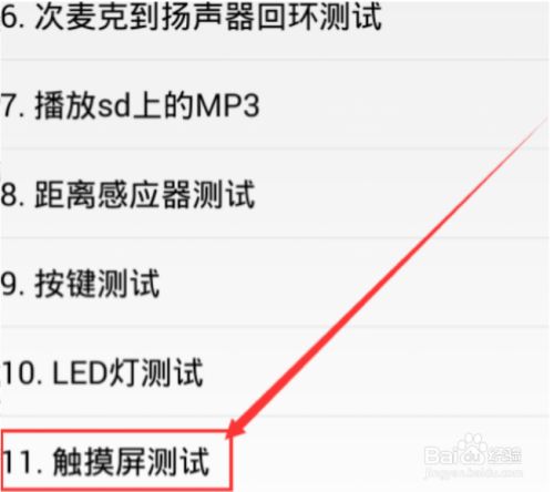 在手机的硬件测试页面中,选择第十一项的【触摸屏测试】,点击该选项。